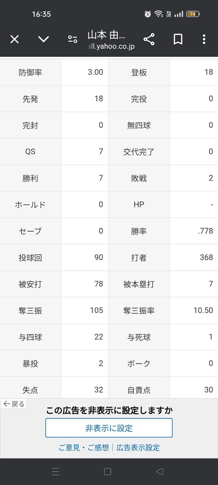 山本由伸(メジャー1年目)「7勝2敗 防御率3.00 投球回90 奪三振率10.50 whip1.11」←これについてw