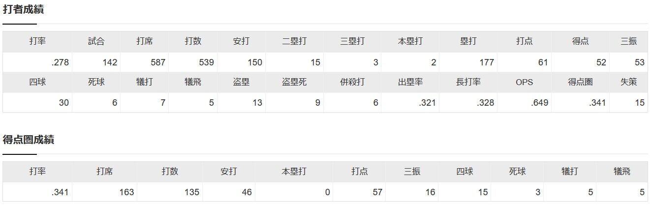 小園海斗 .278 2本61打点.OPS649