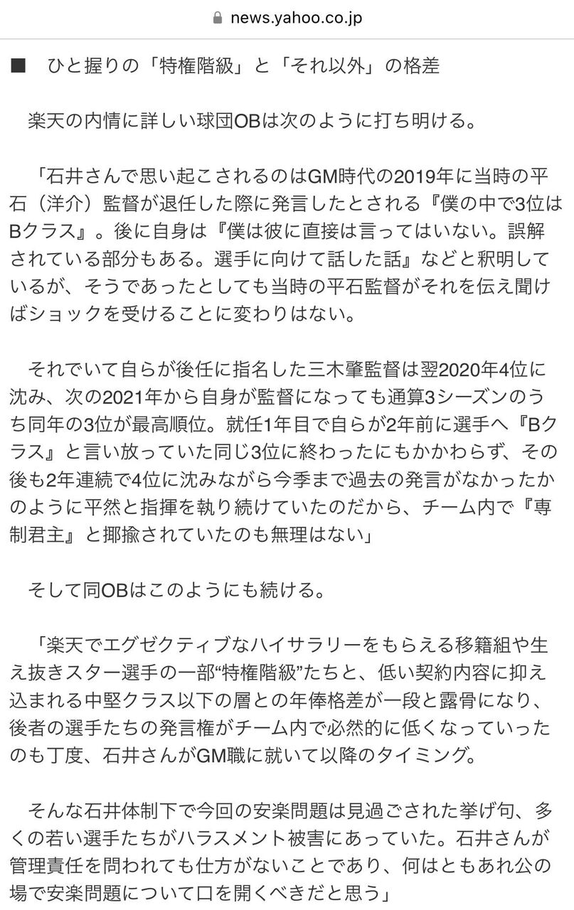 しかも石井GM就任以降から高給取りの特権階級クラス主力以外の発言権が低下していたとのこと