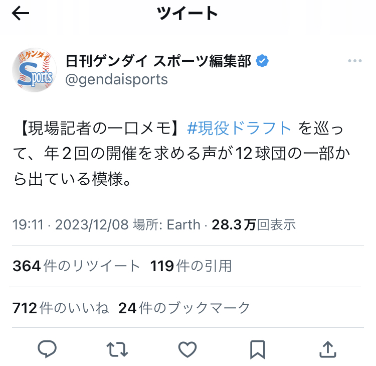 — 日刊ゲンダイ スポーツ編集部 (@gendaisports) December 8, 2023