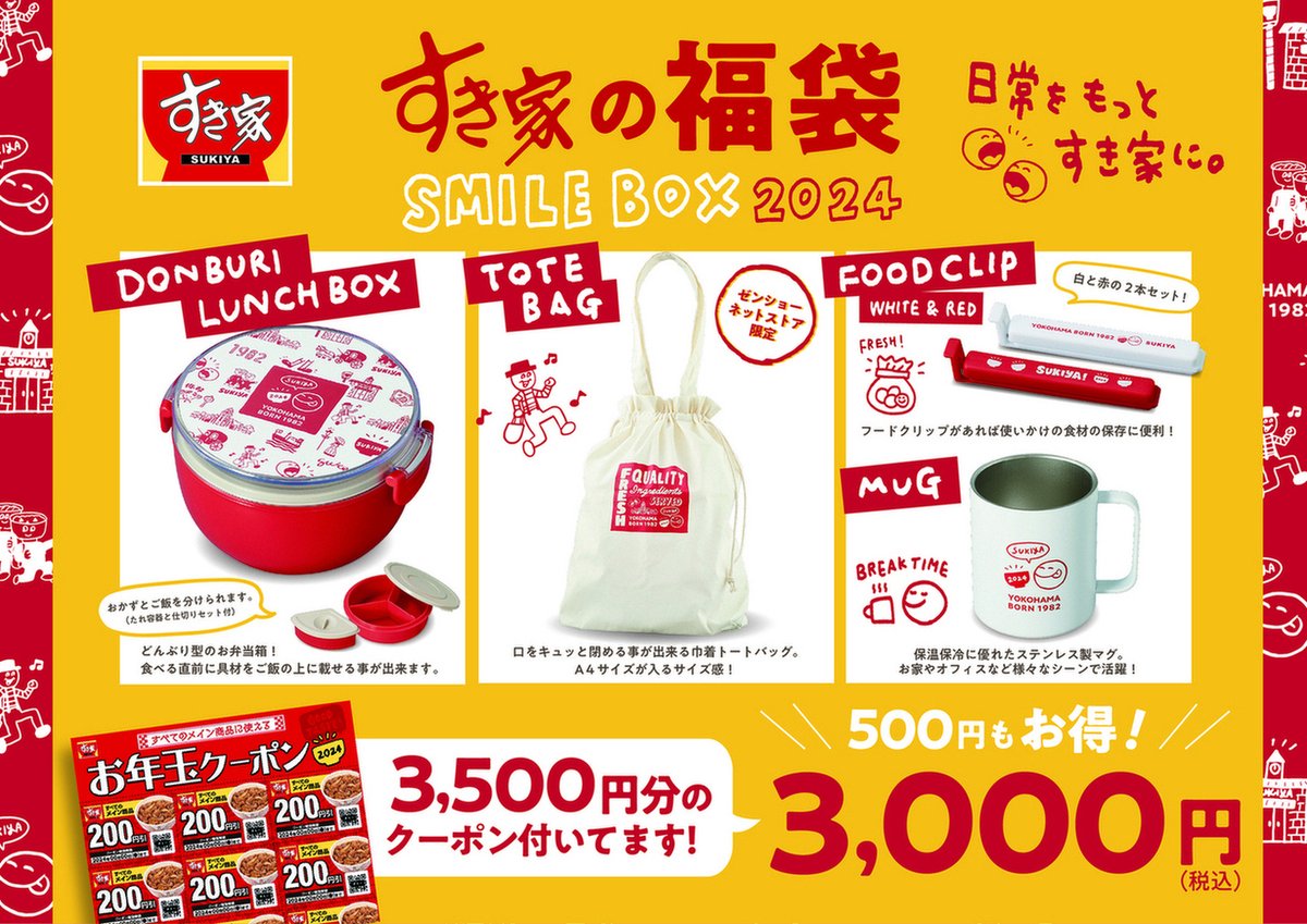 なんとすき家がついに福袋「SMILE BOX 2024」を発表