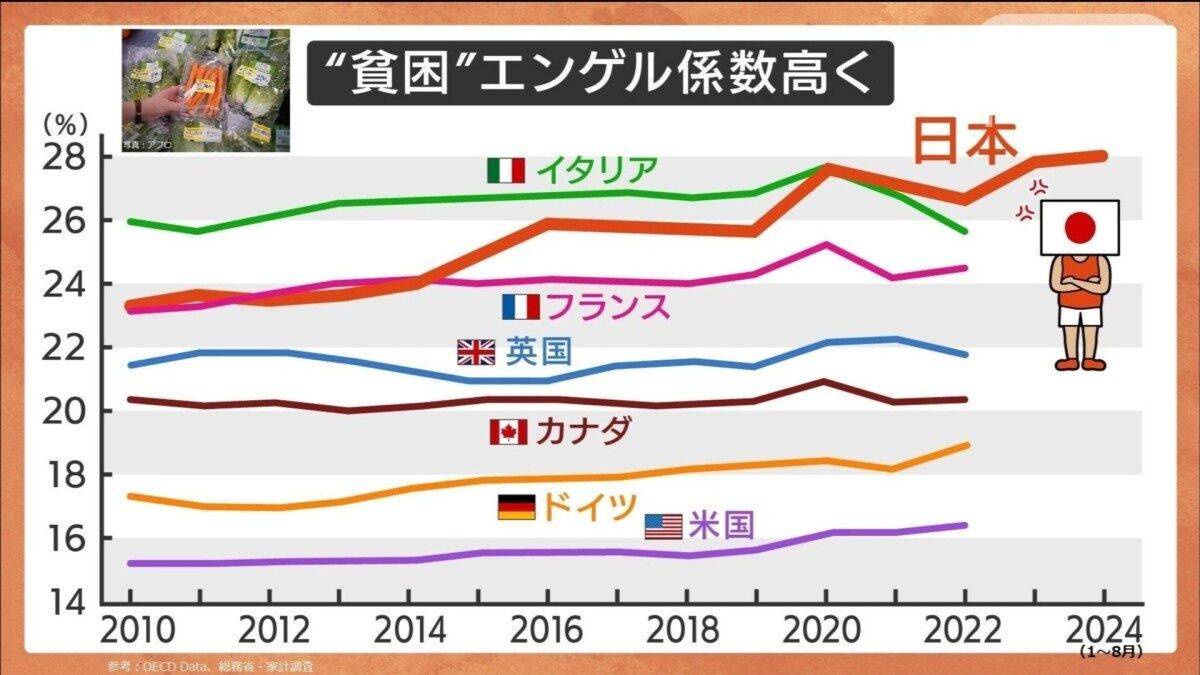 日本、エンゲル係数がアメリカの2倍。お前らアメリカのデブより食ってんの?