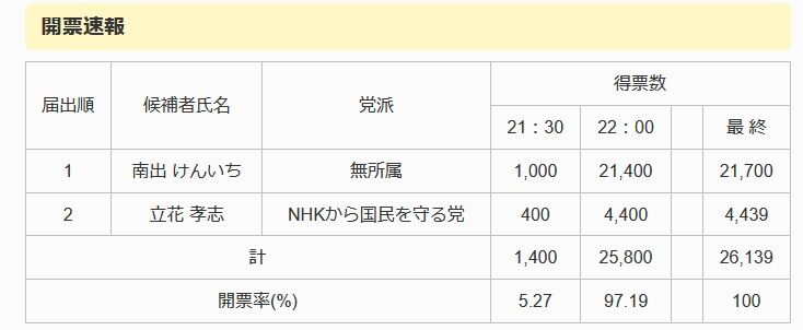 泉大津市長選挙の結果出る 立花孝志氏敗れる