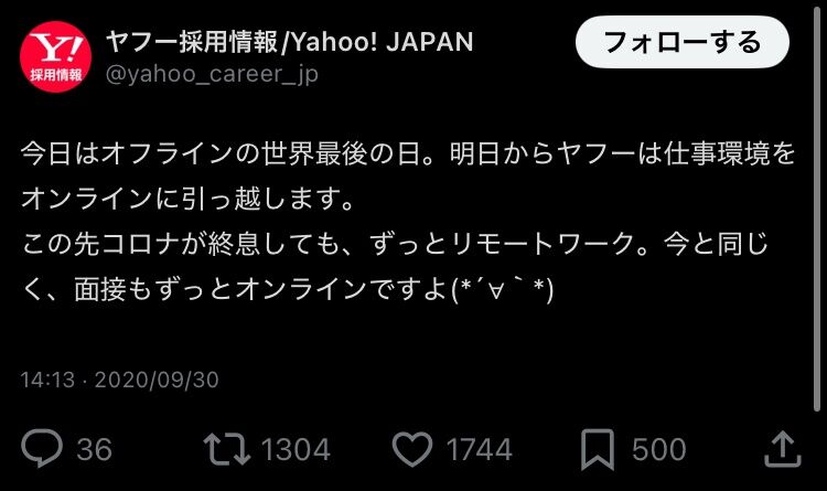 【悲報】Yahooさん、フルリモートワーク廃止で過去の「ずっとリモート」発言を魚拓取られまくる