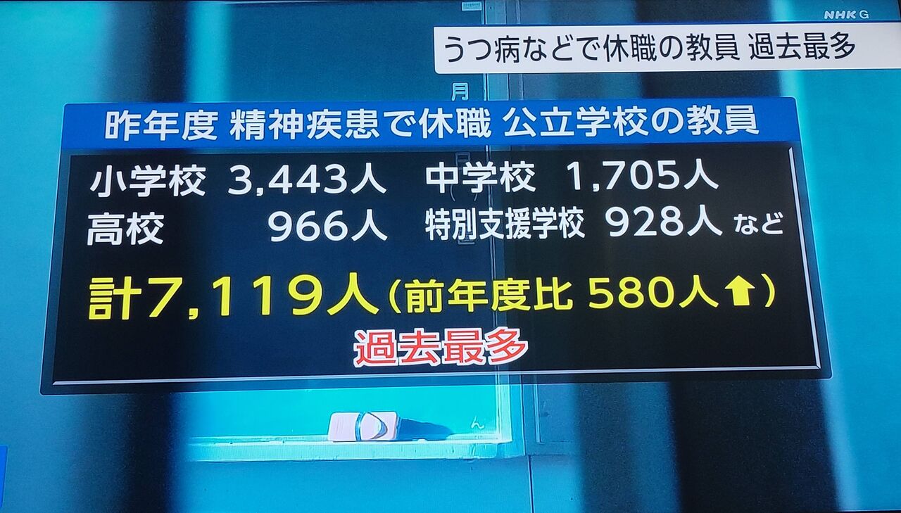 【悲報】昨年うつ病で休職した小中学校の教師7,119人