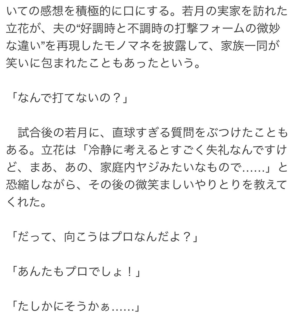 「毎日何品もご飯を作るとか、私はしないからね」夫はオリックス若月健矢…声優・立花理香が初めて明かすイマドキ“プロ野球選手妻”のリアル(曹宇鉉)#プロ野球 #Bs2023 #ORIX #立花理香 #若月健矢 #小早川紗枝 #アイドルマスター #NumberWeb https://t.co/kET8wRrabd