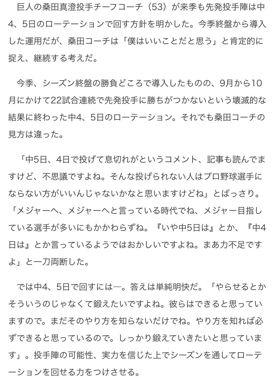 【巨人】桑田2軍監督「中4日中5日できない人はプロ野球選手にならない方がいいと思う」←これwmwmwmwmw