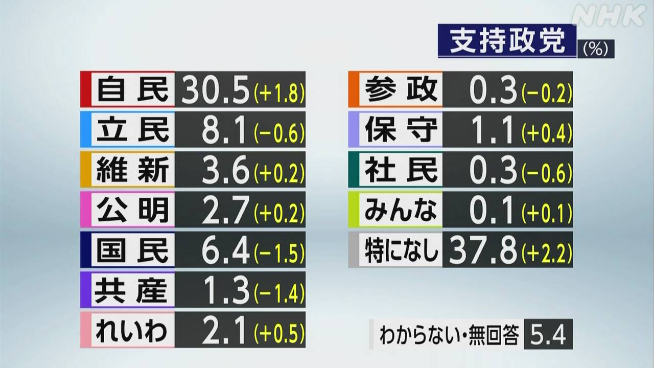 自民 30.5(+1.8)