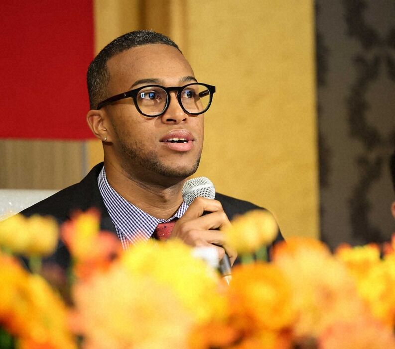 マルティネスが巨人入団会見「優勝争いできるチームでプレーを」金髪を黒に染めえんじ色ネクタイで登場