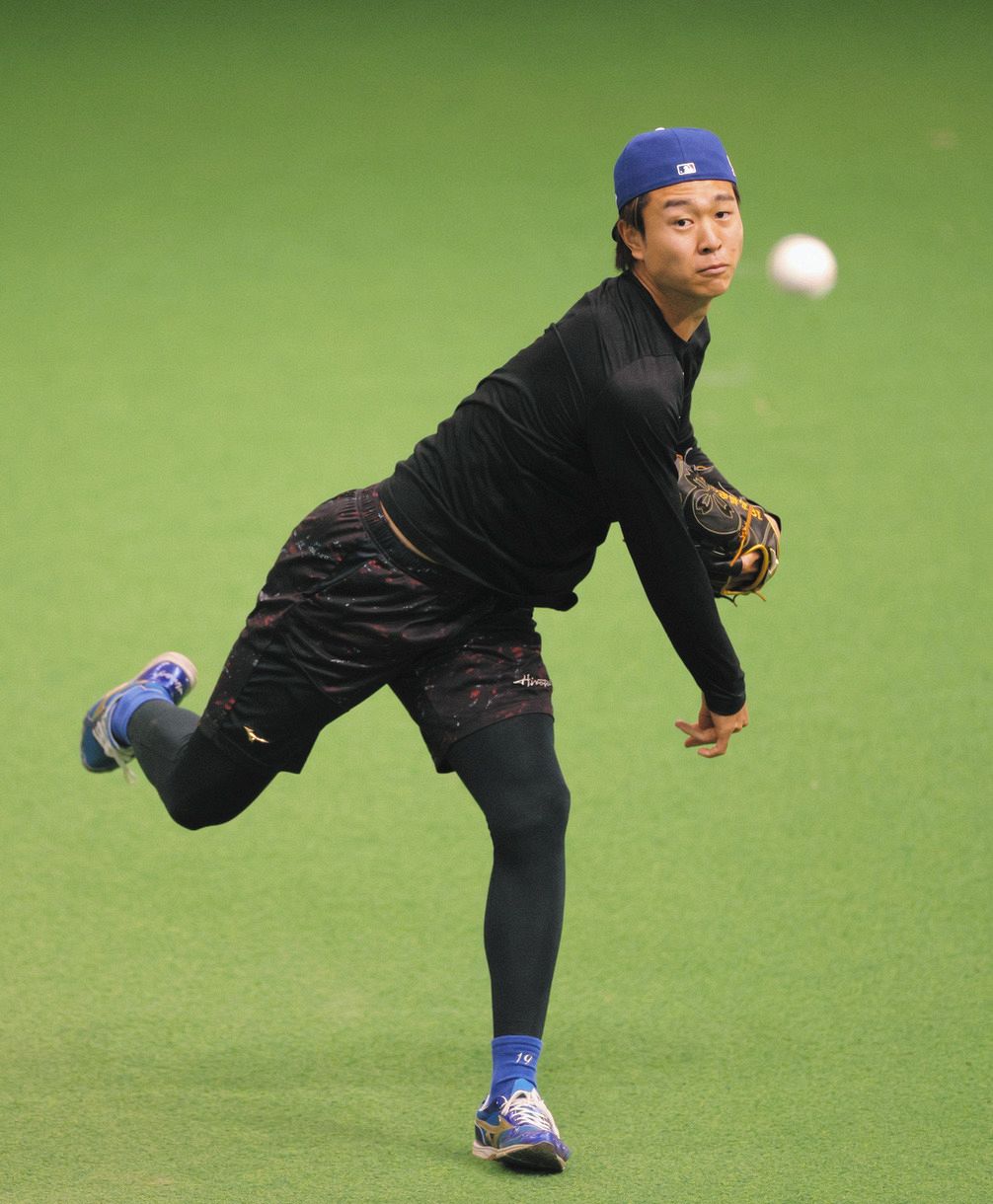 中日・高橋宏斗(22)、中日屋内練習場でドジャースの帽子を被り自主トレ