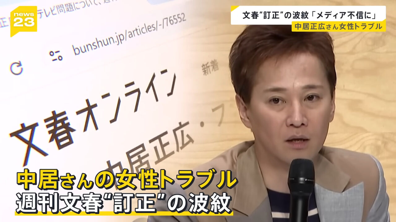 中居正広さんと女性とのトラブルをめぐり、週刊文春が記事の内容を訂正したことに波紋が広がっています。街の人からは「いまさら納得できない」などと厳しい声が上がっています。