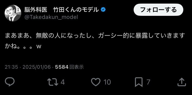 X「脳外科医 竹田くんのモデル」、一晩で1万人フォローワーを獲得するもアカウント削除