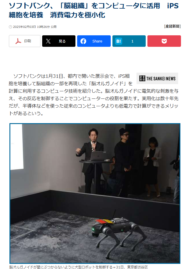 ソフトバンクさん、脳組織を使用したコンピューターを開発する