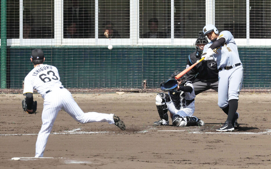 えっ…。虎にサンタナ!? 阪神のラモン・ヘルナンデス外野手(28)が8日、“来日初安打初打点”を記録した。紅白戦に紅組の「4番・DH」で出場し、3回1死一、二塁で右翼線へ適時二塁打。約8000人が球場に駆けつけるなか、外角高めの直球をフェンス手前まで運んだ。「藤川監督からも『右方向を意識して』と言われている。結果に出て良かった」と胸を張った。