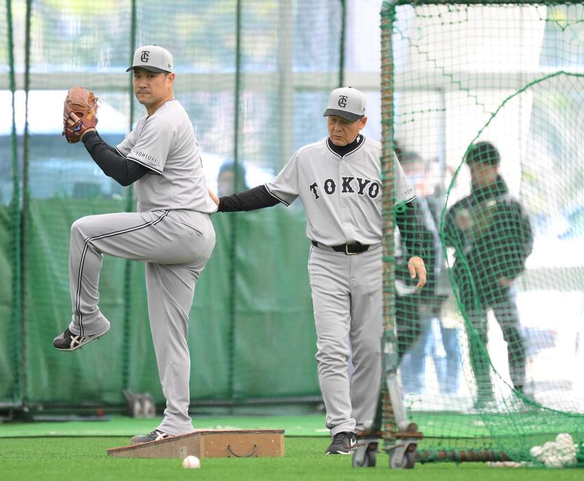 春季キャンプで連日にわたり行われている久保コーチの田中将への個別指導。かつては近鉄時代に岩隈久志、阪神時代にはメッセンジャーらを指導し、そして昨季には菅野智之(現オリオールズ)を復活へ導いた名伯楽は、さまざまなアプローチで田中将の投球フォーム改造に着手している。