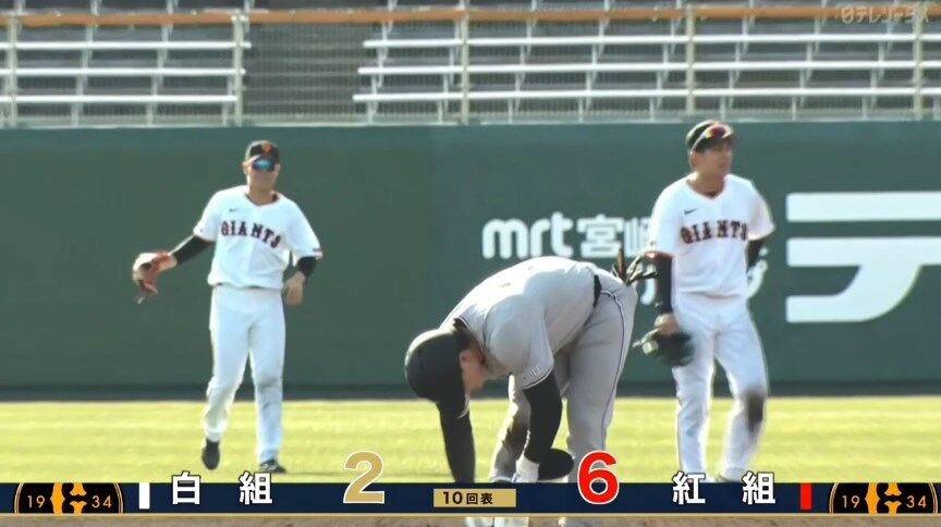 【巨人紅白戦】巨人紅組・岡田悠希、10回無死満塁から走者一掃タイムリーツーベース!今日猛打賞!!!!!