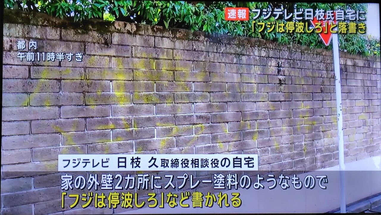 【悲報】フジテレビ日枝氏の杉並区の豪邸、スプレーで落書きされてしまう
