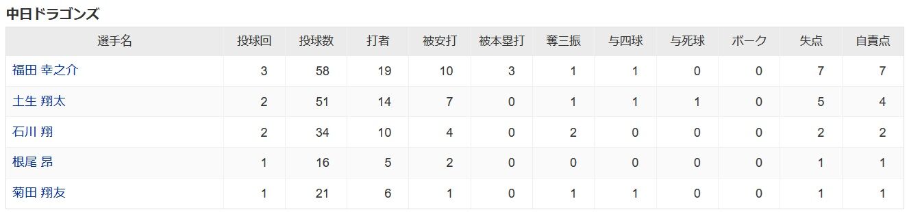 中日ドラゴンズ投手陣、脅威の失点リレー
