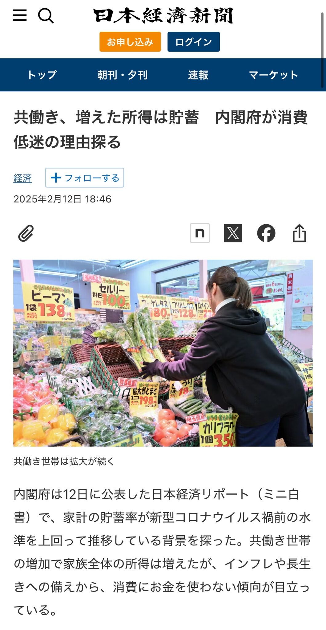 内閣府「不況の原因が判明した!共働きの夫婦が浮いたお金を使わず貯蓄してるからだ」