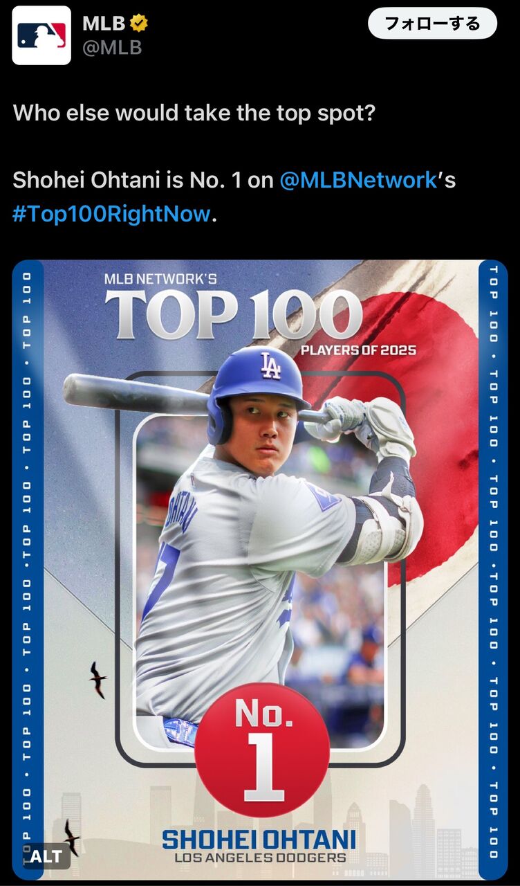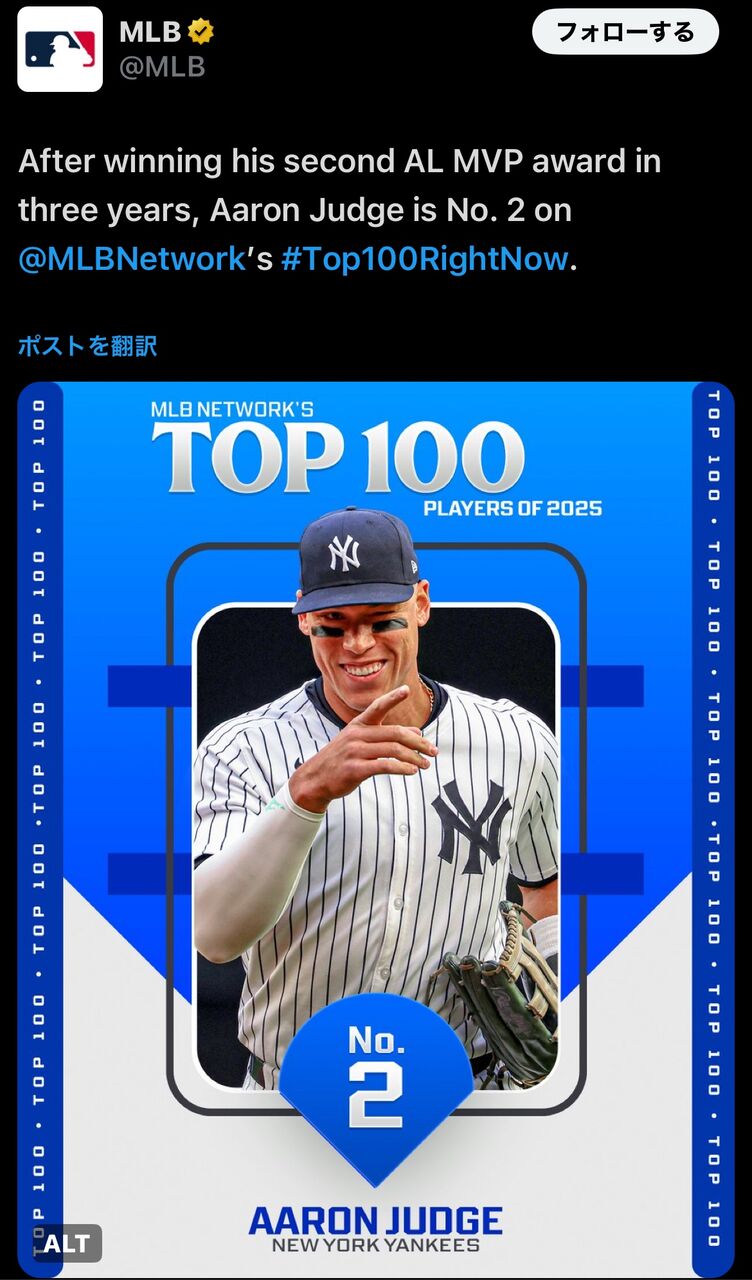 MLB公式「大谷以外にトップ取るやついる?」