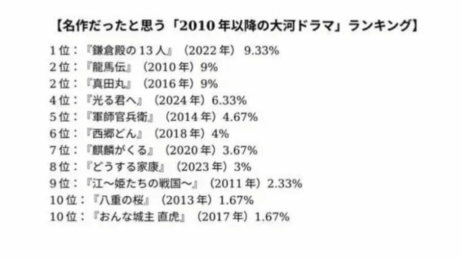そこで本誌は、2010年以降の「大河ドラマ」のなかで名作だと思う作品についてアンケートを行った。