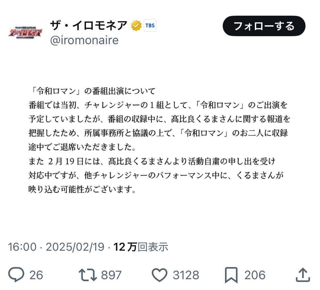 【悲報】令和ロマン、イロモネアの収録を途中で退席させられていた
