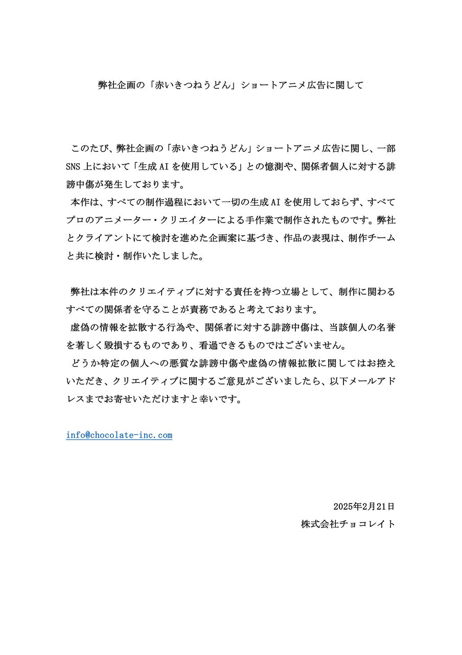 赤いきつねのCM、遂にアニメを企画した会社が声明を発表する