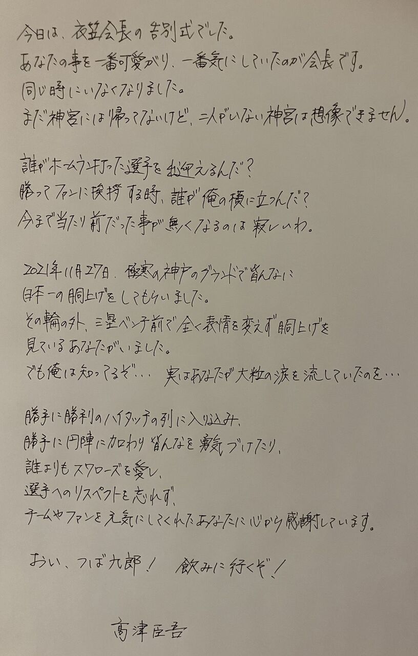 〜髙津監督よりつば九郎へ〜#つば九郎#髙津臣吾#swallows#捲土重来 pic.twitter.com/bafwLbvrB5