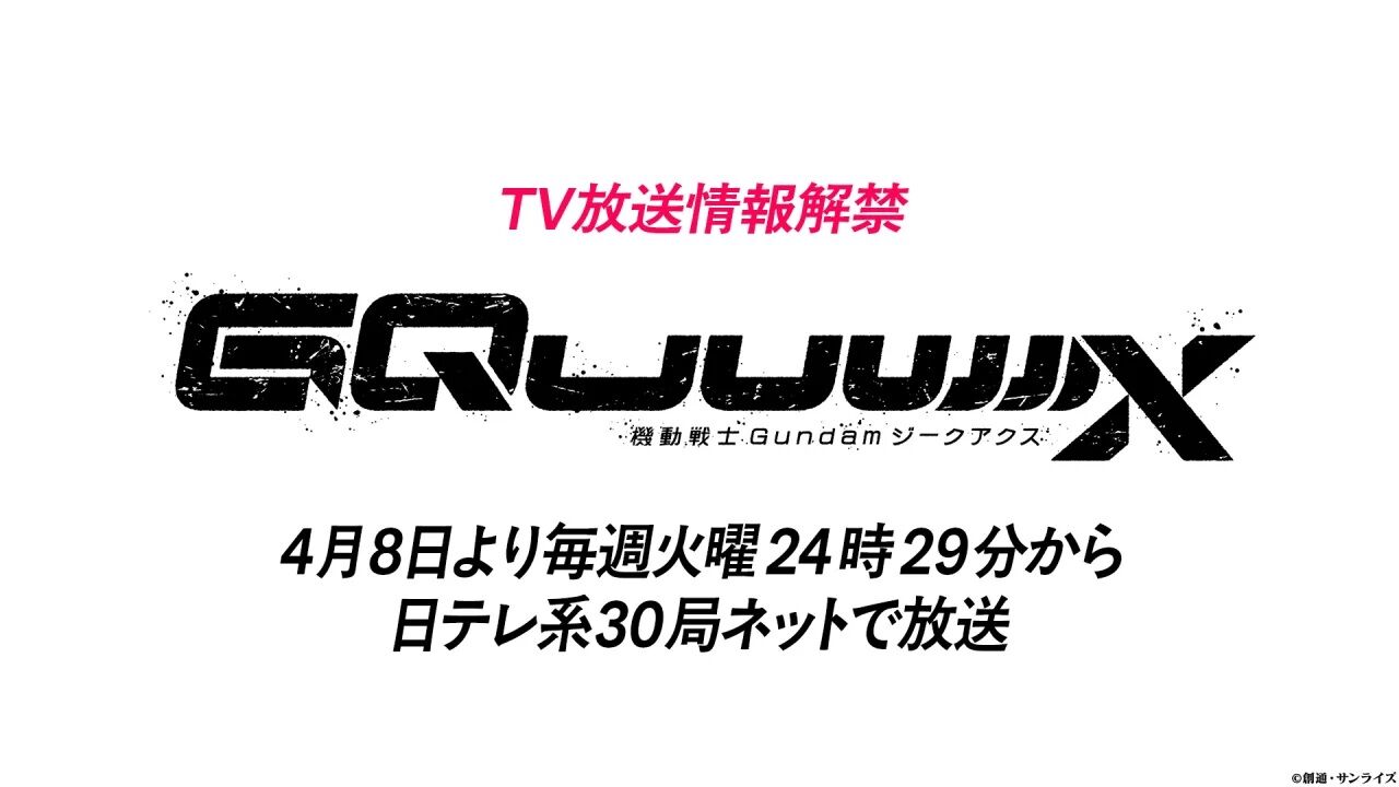テレビシリーズ「機動戦士Gundam GQuuuuuuX」は日本テレビ系列にて4月8日(火)24時29分から放送開始