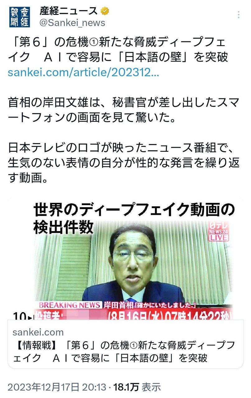 【悲報】岸田首相、例のフェイク動画を閲覧した模様