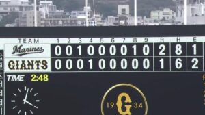 9 読売 3試合 1勝 2敗 0分 .333 得点09 失点13 本01 盗00 率.240 防3.33 失05