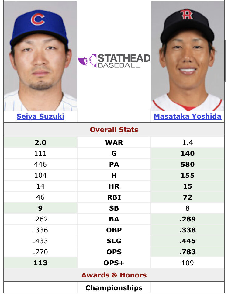 【MLB】吉田正尚vs鈴木誠也、1年目の成績を比べてみた結果wwwywwwywwwywwwywwwywwwy