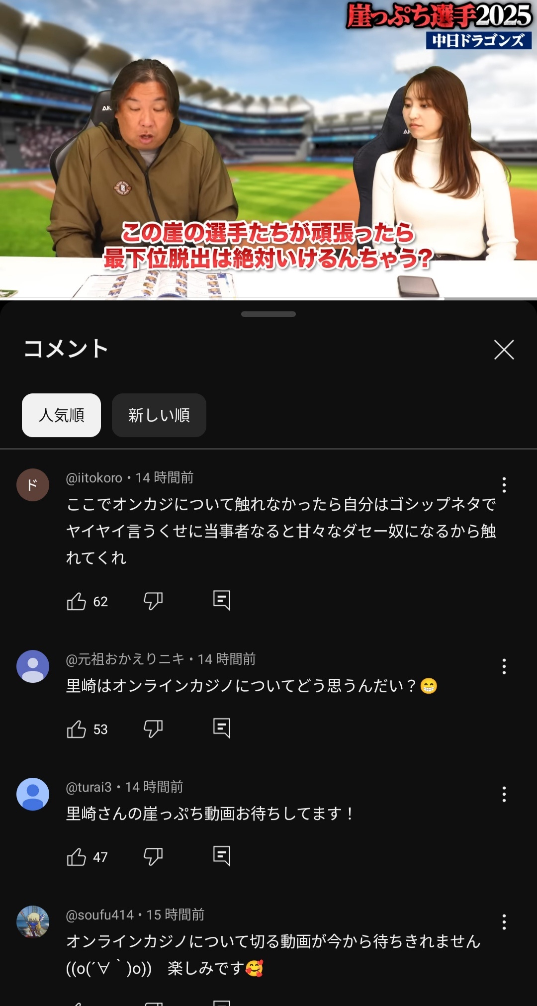 【謎】里崎さん、何故かオンカジ問題の動画をUPしない。