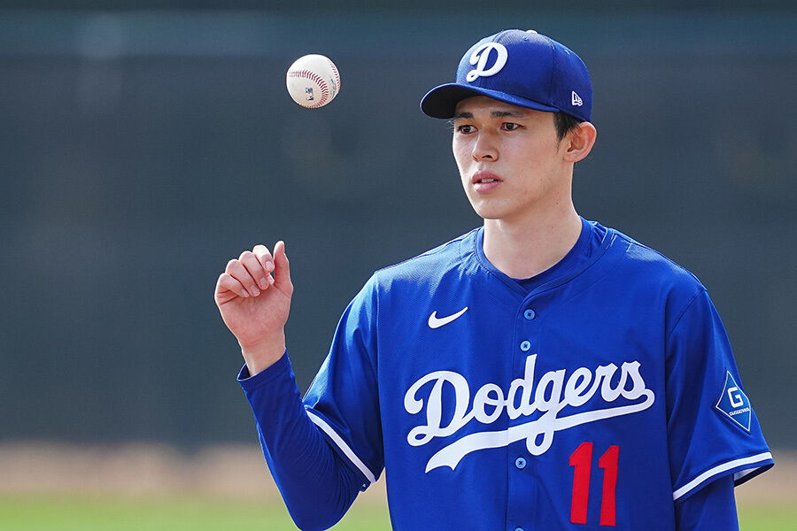 ホワイトソックス打者に対して登板した25日(同26日)のライブBPでは3イニング相当を投げ、38球2安打1本塁打、1奪三振1失点だった。球速は「90マイル中盤だった」(ロバーツ監督)とし、160キロ超の剛速球を持つ右腕にしては、まだ走っていなかった。