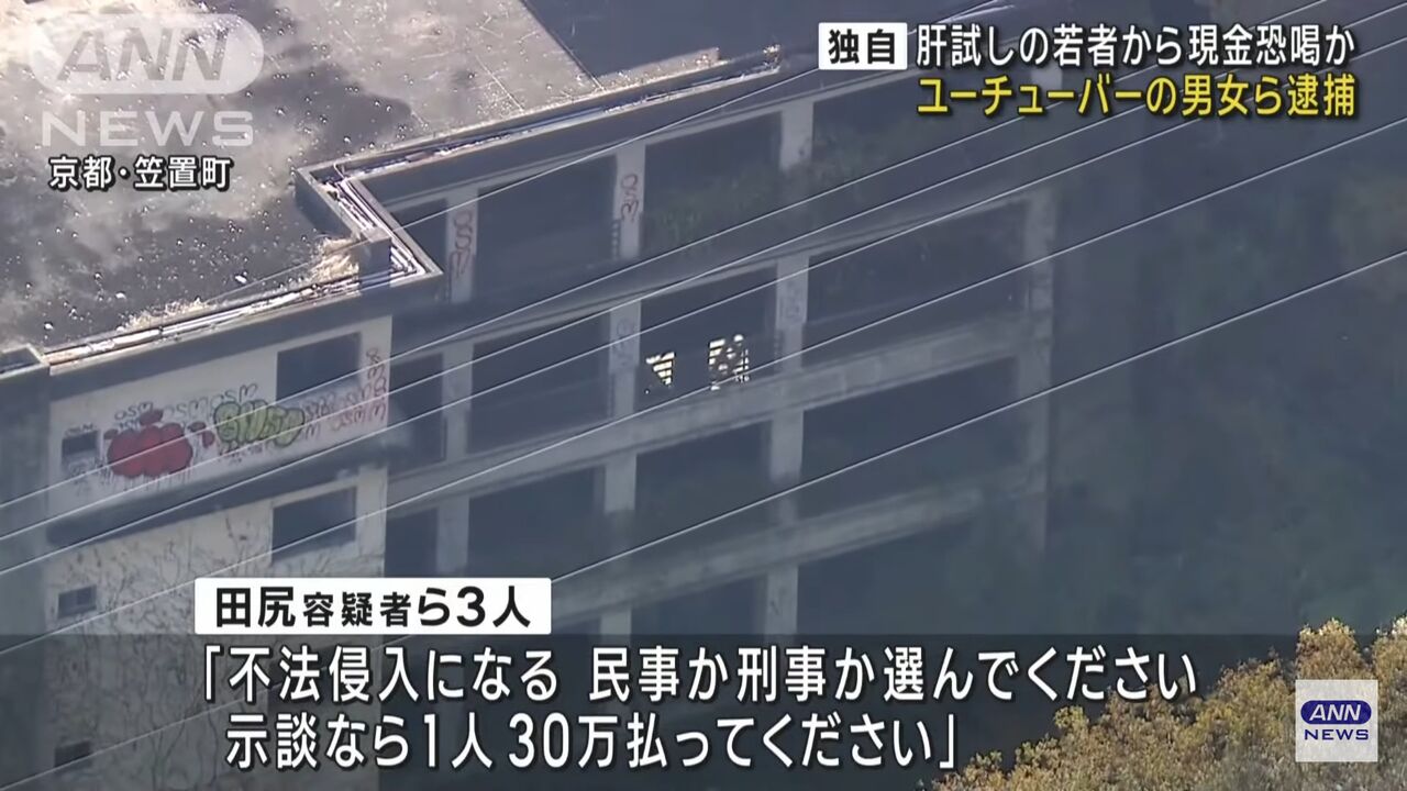 肝試しの若者から現金恐喝か 「心霊系ユーチューバー」ら男女3人逮捕