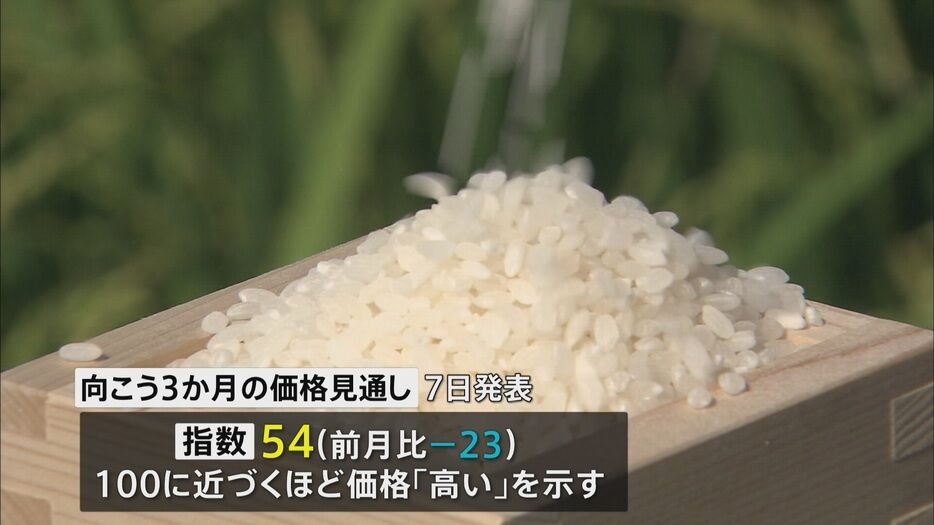 コメの値上がりが続くなか、「向こう3か月」の価格見通しを示す指数が大幅に低下しました。