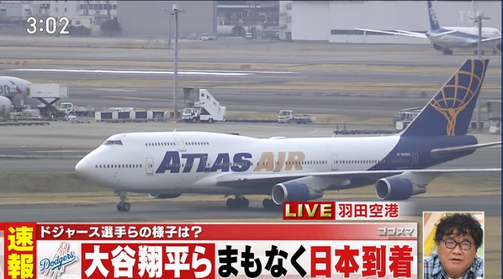 大谷選手らドジャーズナインを乗せたGTI8013便 747-481 N263GT 羽田に着陸しました!!