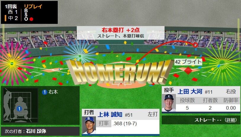 【中日】上林誠知また打った…オープン戦3発目は逆転2ラン、”2球”で2ホーマー開幕へ好調持続