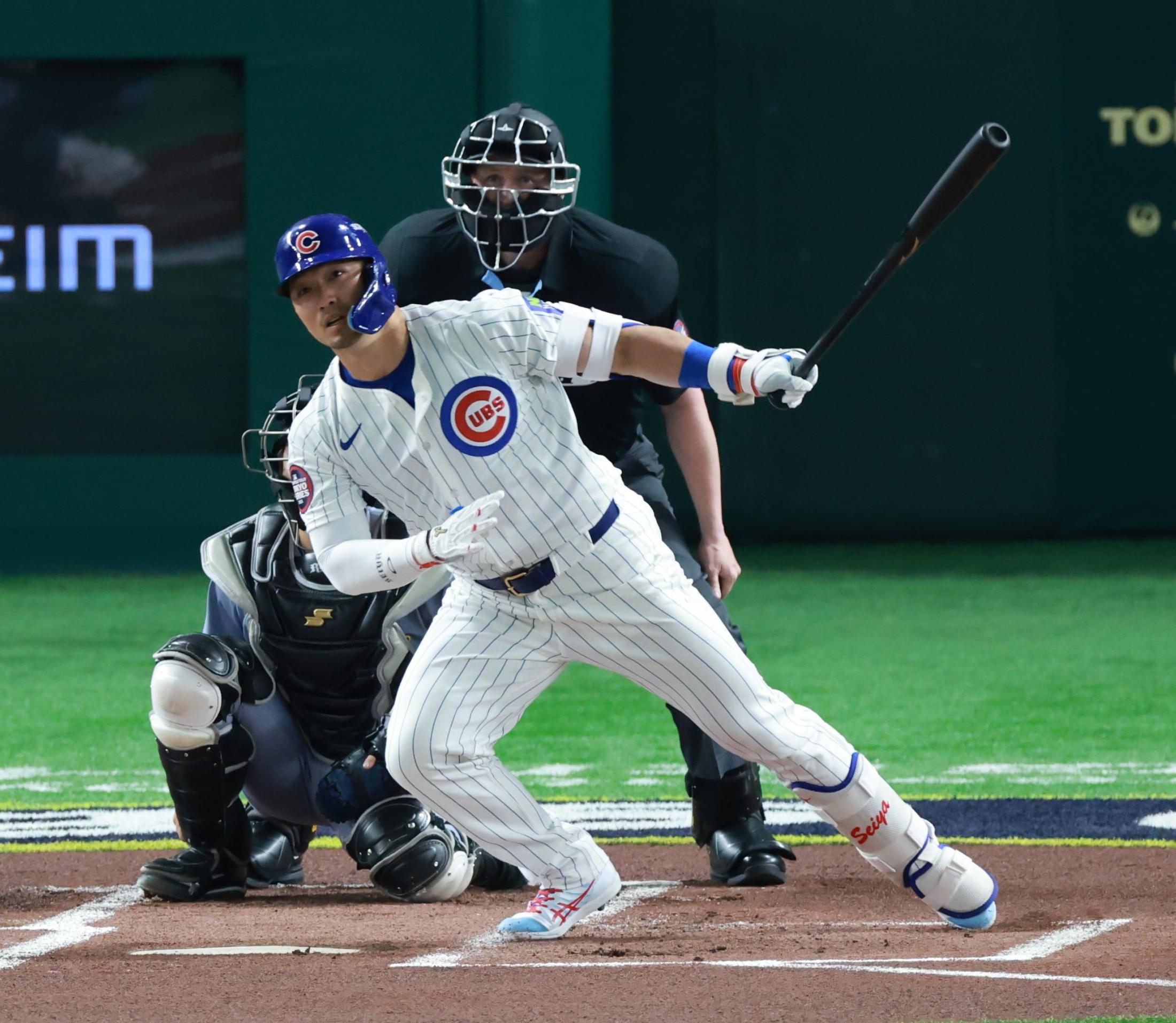 しかし結果は中飛。中継を見ていた米ファンは「セイヤ・スズキの打球速度は111.7マイル、角度は20度だったのに、飛距離はたったの343フィート(約104.5m)」と想像以上に打球が伸びなかったことにデータの面から疑問を感じ、「このボールの違いをリアルタイムで見るのはちょっとクレイジーだね」と綴った。