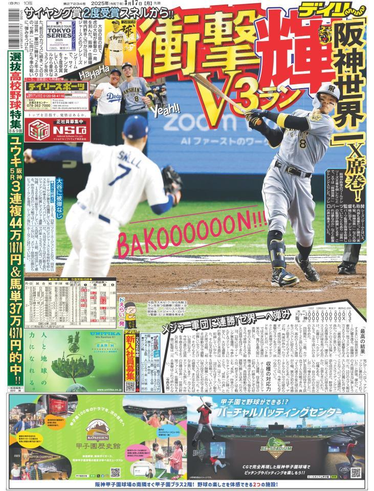 デイリー「輝衝撃V3ラン、阪神世界一」
