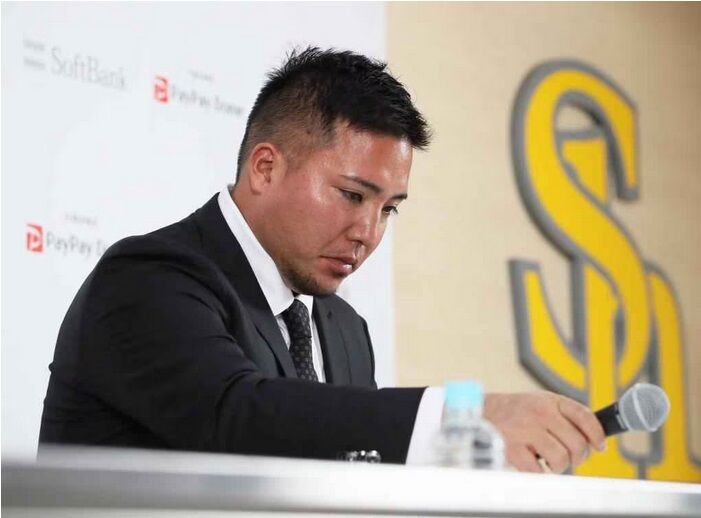 11月14日のFA申請から1カ月余を経て、ようやく正式に獲得発表。そのわずか2時間後、会見が開かれた本拠地ペイペイドーム内の一室にはテレビカメラ10台、報道陣約50人が集まった。覇権奪回への切り札として、4年総額12億円プラス出来高(推定)の大型契約で加入した補強の目玉を披露する晴れの場にしては殺風景で、檀上には山川と三笠GM2人だけという寂しさ。会見も本人の謝罪から始まった。