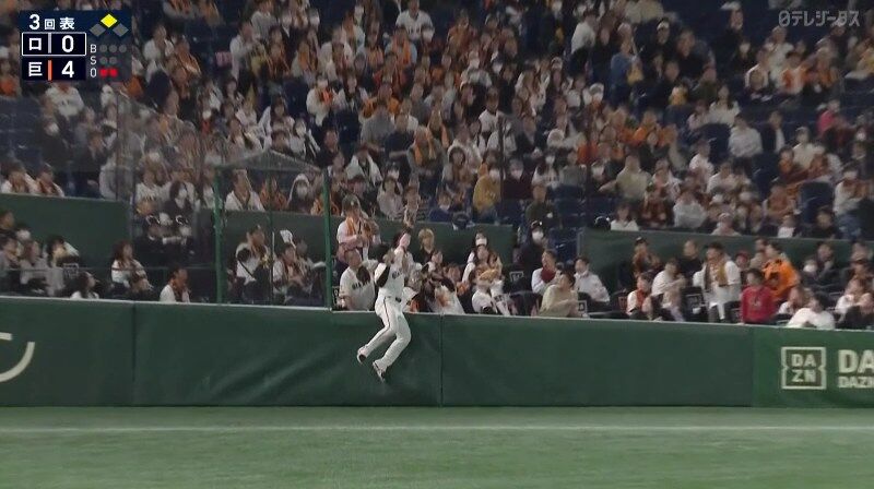 【巨人対ロッテオープン戦】巨人・丸、エキサイトシートに飛び込みながらキャッチするファインプレー!!!!!!!