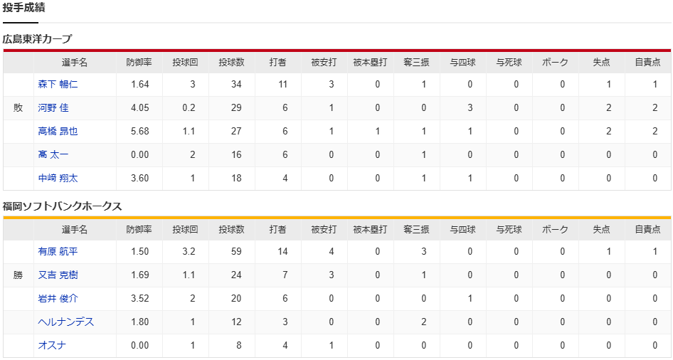 カープ3連敗。林先制打!モンテロ暴走。森下3回1失点。河野2失点炎上。高橋昂が山川に被弾。高&中崎無失点も反撃なし【広島1-5SB/OP戦試合結果】