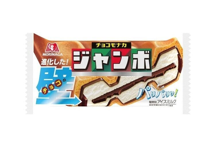 「チョコモナカジャンボ」は、“パリパリッ”とした香ばしいモナカと、まろやかなアイス、パリッとしたチョコレートを組み合わせたロングセラーのアイス。食感には特にこだわっており、モナカへの水分の移行を遅らせるために、スプレーの技術を駆使してモナカにチョコを薄く均一に塗布。また、鮮度を重視した製造・出荷の工程により、独特の楽しい食感を生み出している。