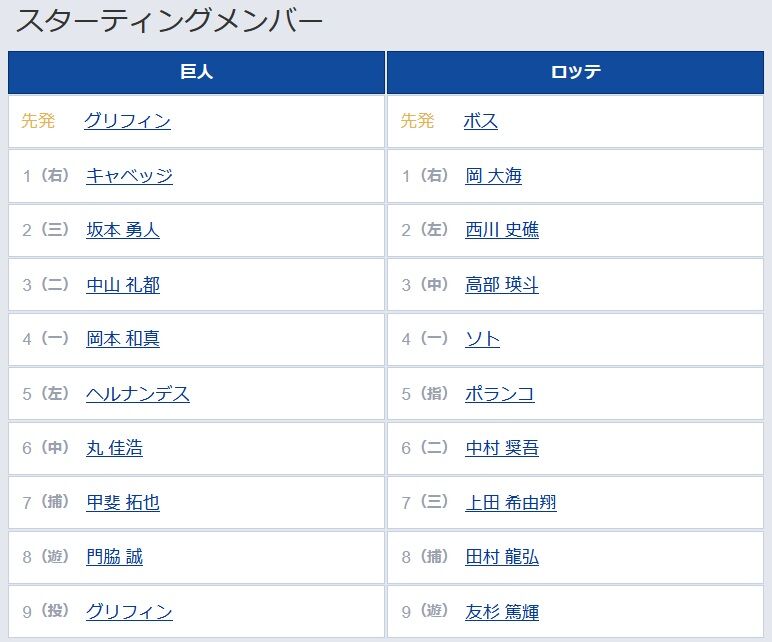 【巨人対ロッテオープン戦】1(右) キャベッジ 3(二) 中山 礼都