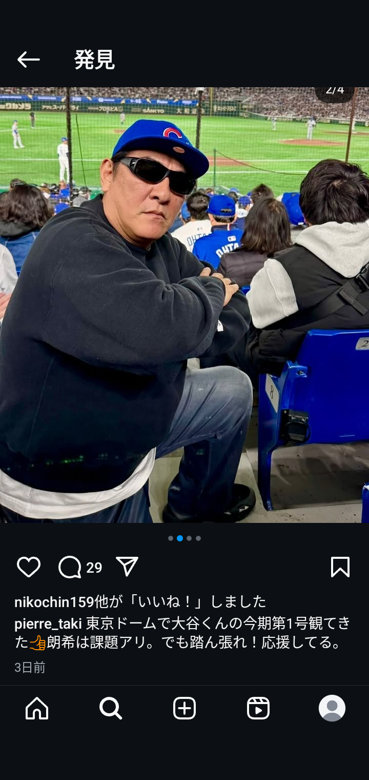 ピエール瀧さん、ドームで大谷のホームランを見てニッコリ