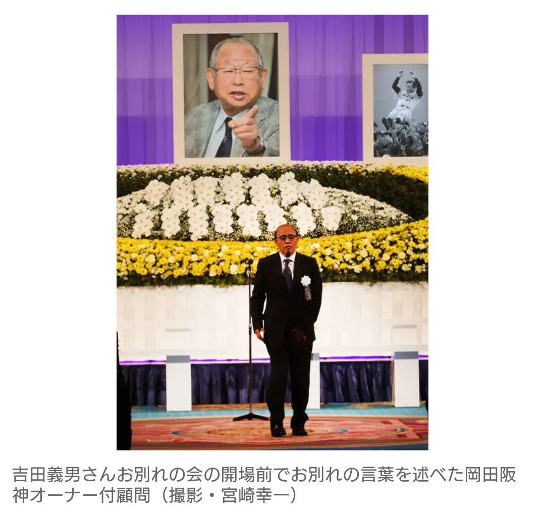 伝統球団である阪神タイガースはこれからもずっとファンに愛される強いチームであり続けるためには、時代が変わっても世代が変わってもなお、吉田イズムをチームに、そして若い世代に継続し続けなければならず、それが私の果たすべき役割だと思っています。その姿をどうか暖かく見守ってください。吉田さん、本当に今までありがとうございました。どうか安らかにお眠りください。
