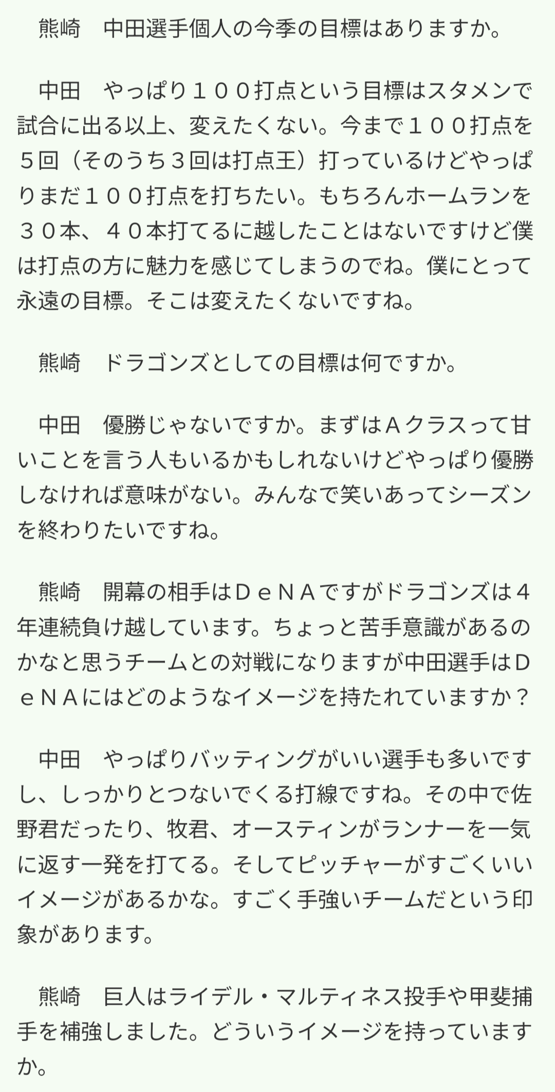 中田翔「目標は優勝。まずはAクラスなんて甘い。優勝しなければ意味がない」
