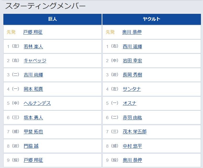 9 (投) 戸郷 翔征 9 (投) 奥川 恭伸
