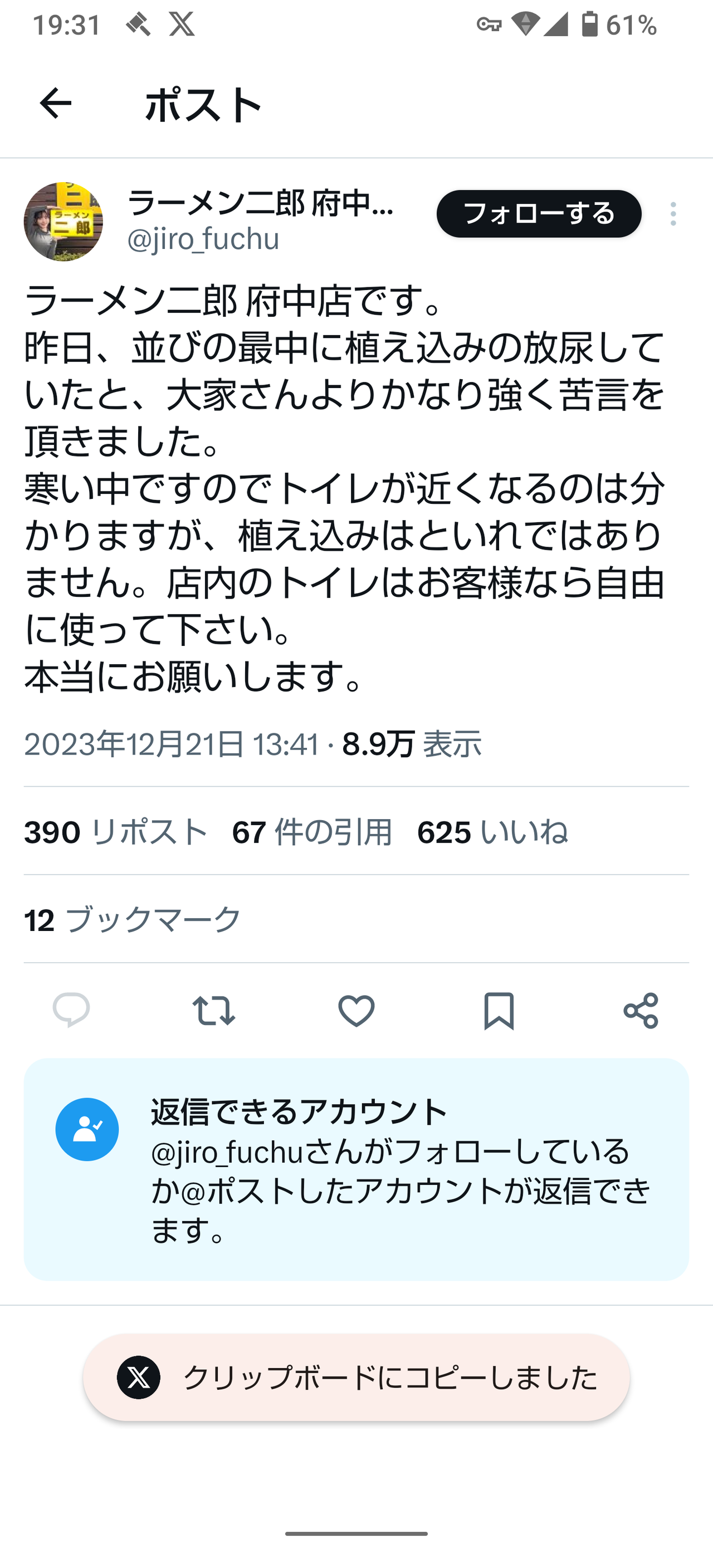 ラーメン二郎さん、客が植え込みに立ちションしてお気持ち表明